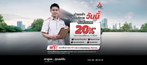 มิตซูบิชิ มอเตอร์ส ขอเชิญชวนลูกค้าเจ้าของรถยนต์มิตซูบิชิที่มีรถอายุ 15 ปีขึ้นไปรับส่วนลด 20% พร้อมฟรีเช็กรถ 22 รายการและ MUT-III